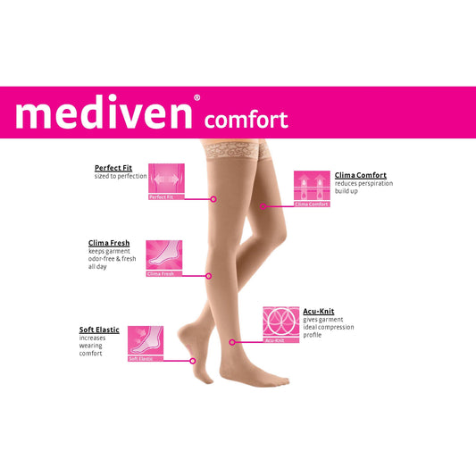 mediven comfort 20-30 mmHg thigh beaded topband open toe standard
